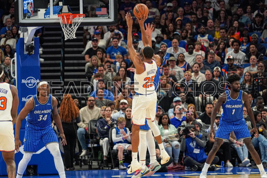Orlando, Florida, USA, November 22, 2025, New York Knicks player Mikal Bridges #25 shoots a three at the Kia Center. (Photo Credit: Marty Jean-Louis)