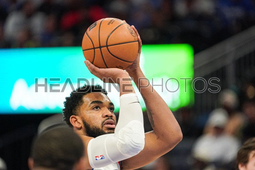 Orlando, Florida, USA, November 22, 2025, New York Knicks forward Karl-Anthony Towns #32 shoots a free throw at the Kia Center. (Photo Credit: Marty Jean-Louis)