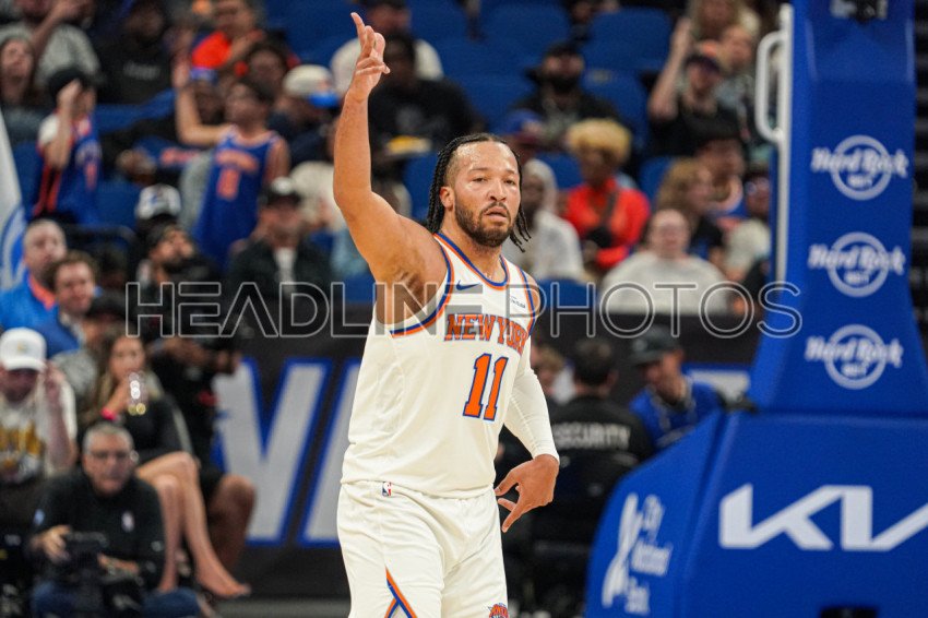 Orlando, Florida, USA, November 22, 2025, New York Knicks guard Jalen Brunson #11 reacts after making a three at the Kia Center. (Photo Credit: Marty Jean-Louis)