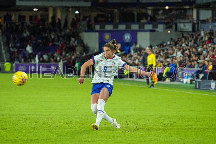 Orlando, USA, November 28, 2025, U.S. National Women's Team player Kate Wiesner #9 makes a free kick at Inter&Co Stadium. (Photo Credit: Marty Jean-Louis)