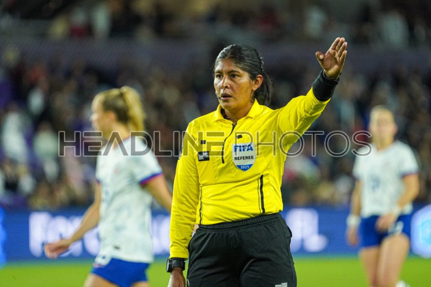 Orlando, USA, November 28, 2025, Ref Sandra Benitez points to the corner during the match at Inter&Co Stadium. (Photo Credit: Marty Jean-Louis)