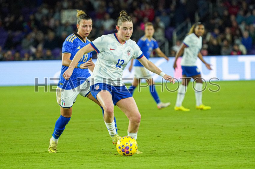 Orlando, USA, November 28, 2025, U.S. National Women's Team player Olivia Moultrie #13 controls the ball at Inter&Co Stadium. (Photo Credit: Marty Jean-Louis)