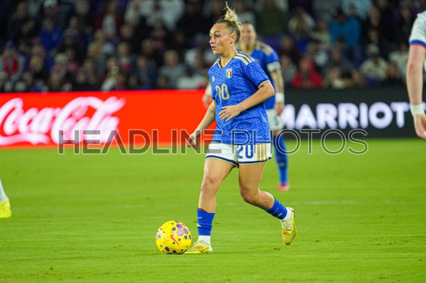 Orlando, USA, November 28, 2025, Italy's Women National Team player Giada Greggi #20 look to make a pass in a friendly match at Inter&Co Stadium. (Photo Credit: Marty Jean-Louis)
