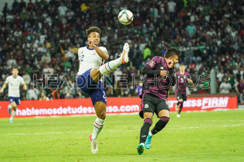Mexico City, Mexico, March 24, 2022, USA Defender Erik Palmer-Brown #22 kicks the ball out of the way in the 2022 World Cup Qualifier at Allianz Field. (Photo Credit: Marty Jean-Louis)
