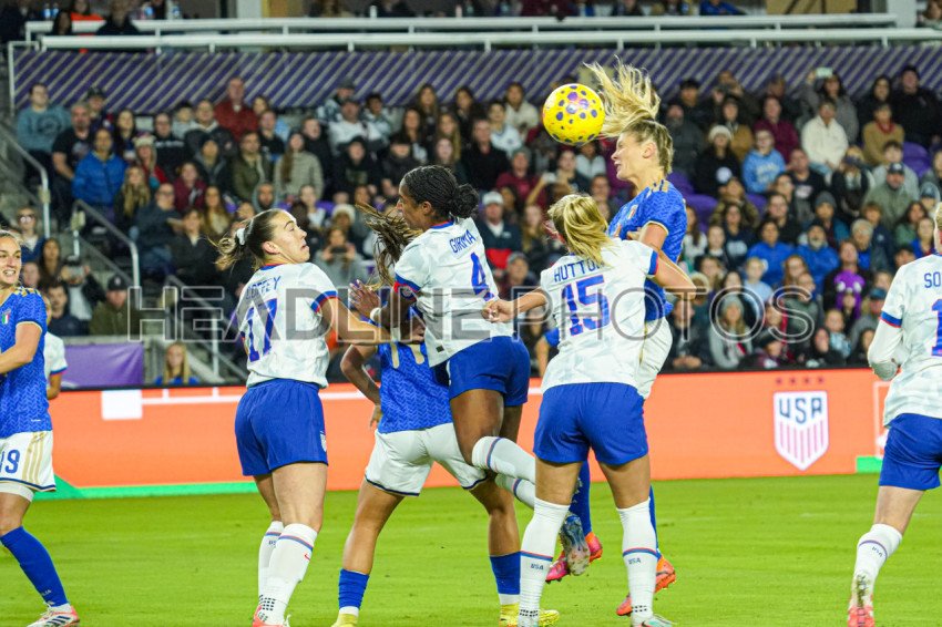Orlando, USA, November 28, 2025, Italy's Women National Team player Michela Cambiaghi #21 attempt to make a goal with a header at Inter&Co Stadium. (Photo Credit: Marty Jean-Louis)