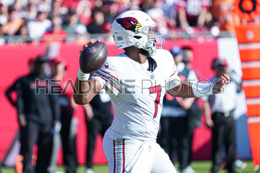 Tampa Bay, Florida, USA, November 30, 2025, Arizona Cardinals quarterback Jacoby Brissett #7 makes a pass at Raymond James Stadium. (Photo Credit: Marty Jean-Louis)