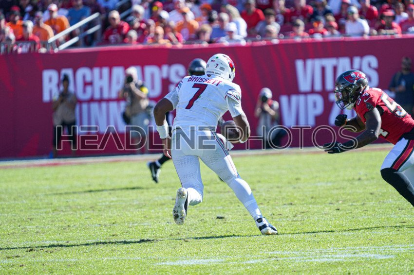 Tampa Bay, Florida, USA, November 30, 2025, Arizona Cardinals quarterback Jacoby Brissett #7 on the run at Raymond James Stadium. (Photo Credit: Marty Jean-Louis)