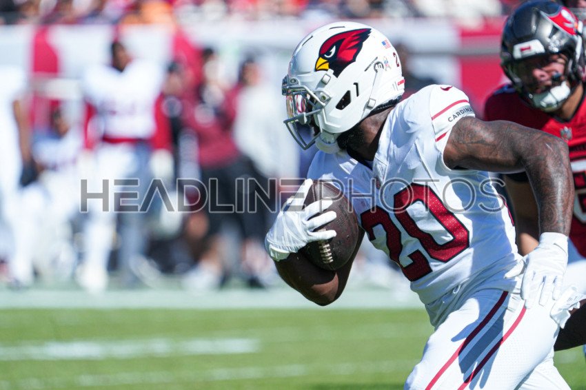 Tampa Bay, Florida, USA, November 30, 2025, Arizona Cardinals running back Zonovan Knight #20 makes a run at Raymond James Stadium. (Photo Credit: Marty Jean-Louis)