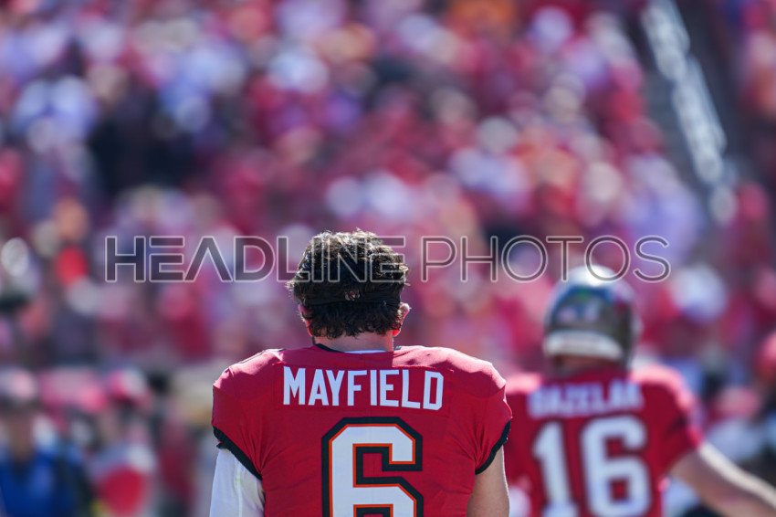 Tampa Bay, Florida, USA, November 30, 2025, Tampa Bay Buccaneers quarterback Baker Mayfield #6 at Raymond James Stadium. (Photo Credit: Marty Jean-Louis)