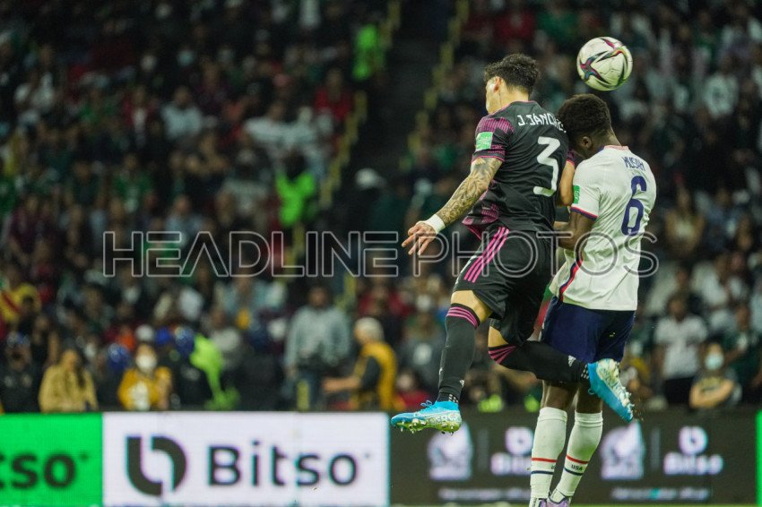 Mexico City, Mexico, March 24, 2022, Mexico Defender JOrge Eduardo Sanchez Ramos #3 wins the header in the 2022 World Cup Qualifier at Allianz Field. (Photo Credit: Marty Jean-Louis)