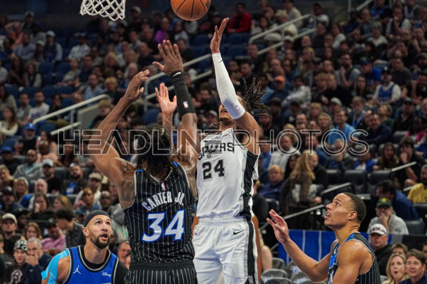 Orlando, Florida, USA, December 3, 2025, San Antonio Spurs guard Devin Vassell #24 makes a pass at the Kia Center. (Photo Credit: Marty Jean-Louis)