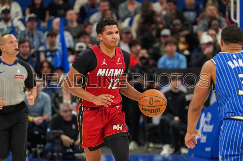 Orlando, Florida, USA, December 5, 2025, Miami Heat guard Dru Smith #12 moves forward at the Kia Center. (Photo Credit: Marty Jean-Louis)