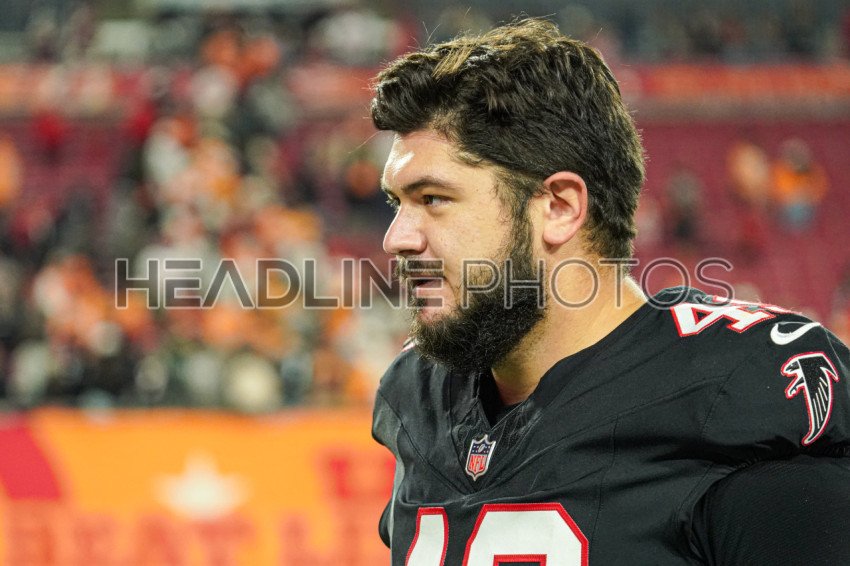 Tampa Bay, Florida, USA, December 11, 2025, Atlanta Falcons player Liam McCullough #49 at Raymond James Stadium. (Photo Credit: Marty Jean-Louis)