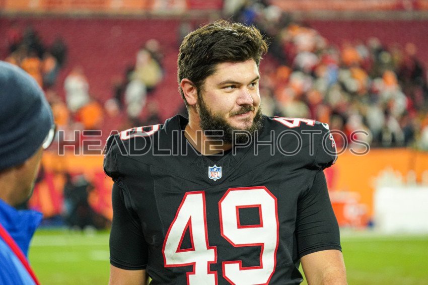 Tampa Bay, Florida, USA, December 11, 2025, Atlanta Falcons player Liam McCullough #49 at Raymond James Stadium. (Photo Credit: Marty Jean-Louis)