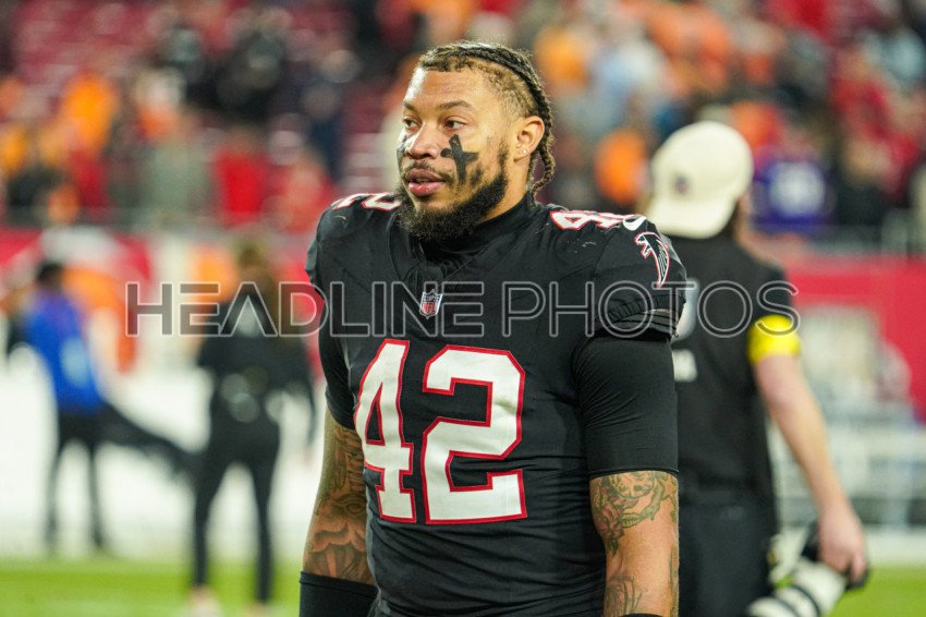 Tampa Bay, Florida, USA, December 11, 2025, Atlanta Falcons player Josh Woods #42 at Raymond James Stadium. (Photo Credit: Marty Jean-Louis)