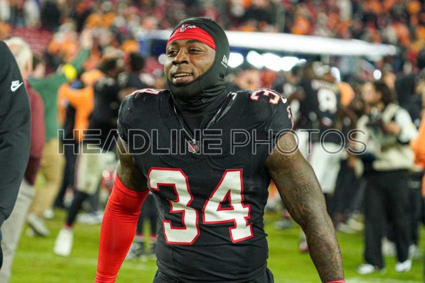 Tampa Bay, Florida, USA, December 11, 2025, Atlanta Falcons player Jammie Robinson #34 at Raymond James Stadium. (Photo Credit: Marty Jean-Louis)