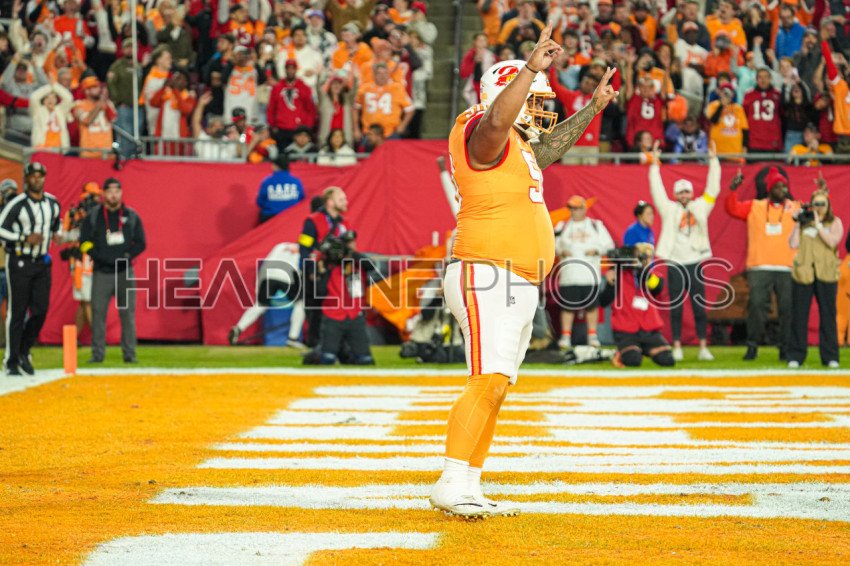 Tampa Bay, Florida, USA, December 11, 2025, Tampa Bay Buccaneers player Vita Vea #50 celebrating a touchdown at Raymond James Stadium. (Photo Credit: Marty Jean-Louis)