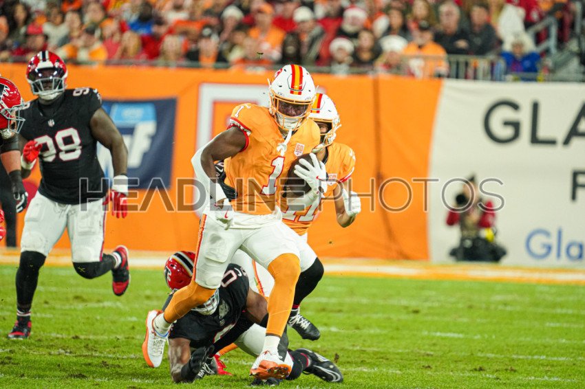 Tampa Bay, Florida, USA, December 11, 2025, Tampa Bay Buccaneers player Rachaad White #1 on the run at Raymond James Stadium. (Photo Credit: Marty Jean-Louis)