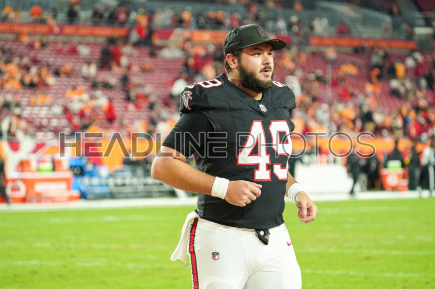 Tampa Bay, Florida, USA, December 11, 2025, Atlanta Falcons player Liam McCullough #49 at Raymond James Stadium. (Photo Credit: Marty Jean-Louis)