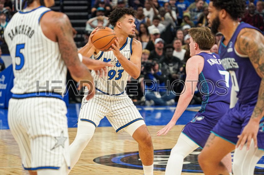 Orlando, Florida, USA, December 26, 2025, Orlando Magic forward Noah Penda #93 guarding the ball in the first half at the Kia Center. (Photo Credit: Marty Jean-Louis)