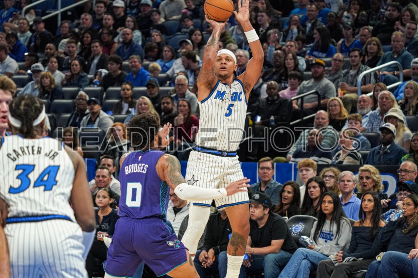 Orlando, Florida, USA, December 26, 2025, Orlando Magic forward Paolo Banchero #5 shoots a three at the Kia Center. (Photo Credit: Marty Jean-Louis)