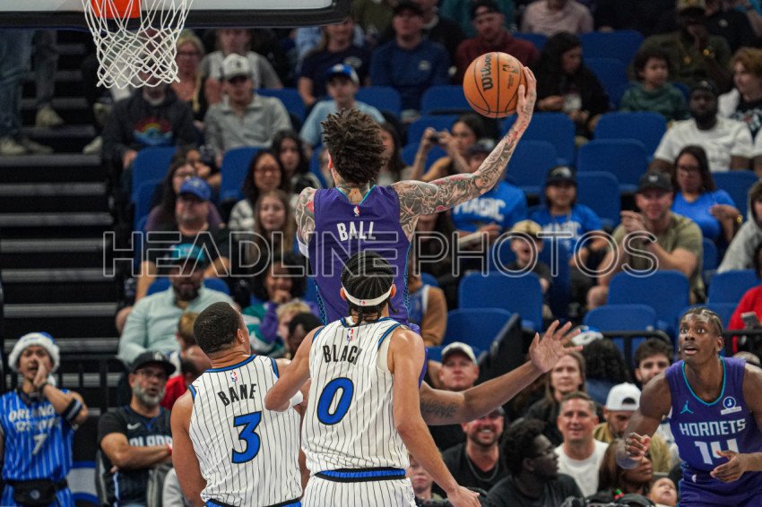 Orlando, Florida, USA, December 26, 2025, Charlotte Hornets guard LaMelo Ball #1 attempt to score at the Kia Center. (Photo Credit: Marty Jean-Louis)