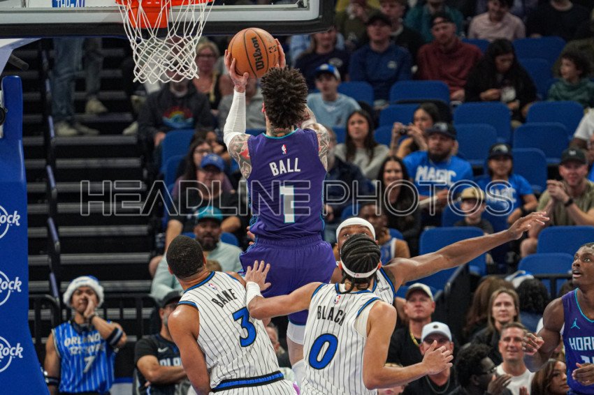Orlando, Florida, USA, December 26, 2025, Charlotte Hornets guard LaMelo Ball #1 attempt to score at the Kia Center. (Photo Credit: Marty Jean-Louis)