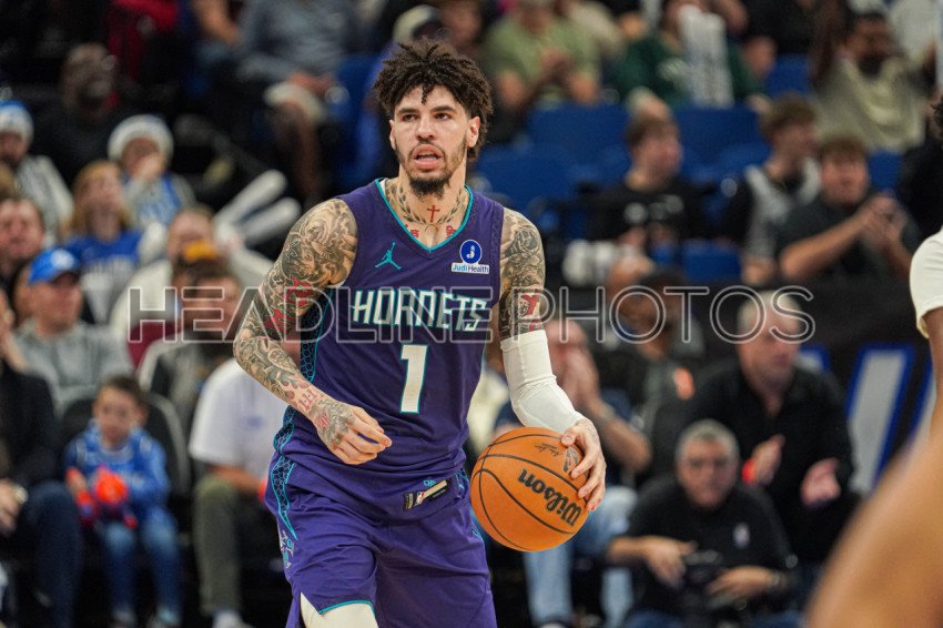 Orlando, Florida, USA, December 26, 2025, Charlotte Hornets guard LaMelo Ball #1 moves forward at the Kia Center. (Photo Credit: Marty Jean-Louis)