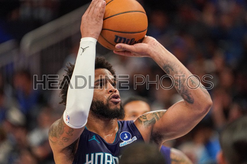 Orlando, Florida, USA, December 26, 2025, Charlotte Hornets forward Miles Bridges #0 shoots a free throw at the Kia Center. (Photo Credit: Marty Jean-Louis)