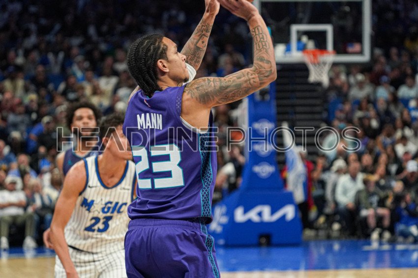 Orlando, Florida, USA, December 26, 2025, Charlotte Hornets guard Tre Mann #23 shoots a three at the Kia Center. (Photo Credit: Marty Jean-Louis)