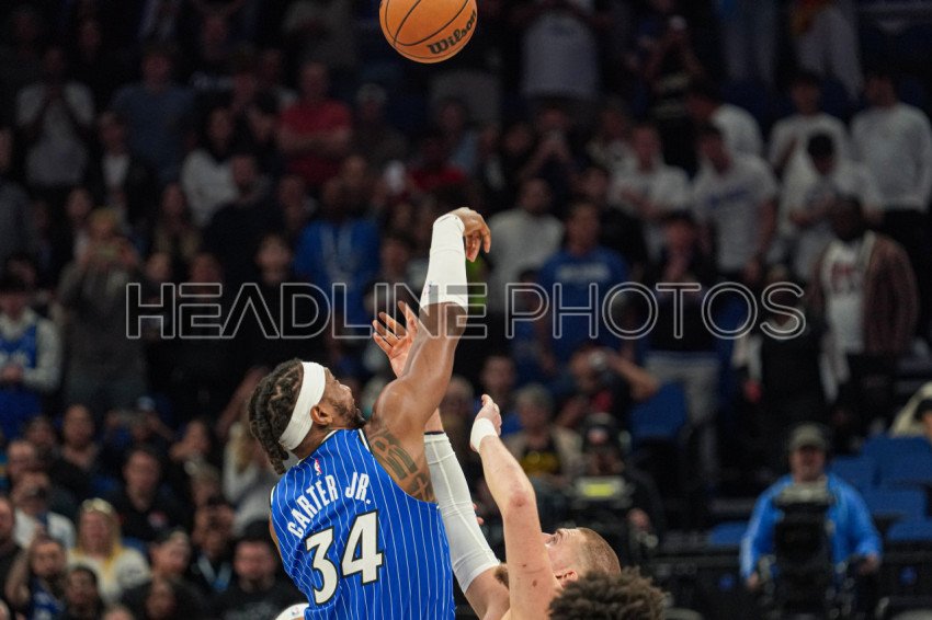 Orlando, Florida, USA, December 27, 2025, Orlando Magic center Wendell Carter Jr #34 wins the tipoff at the Kia Center. (Photo Credit: Marty Jean-Louis)