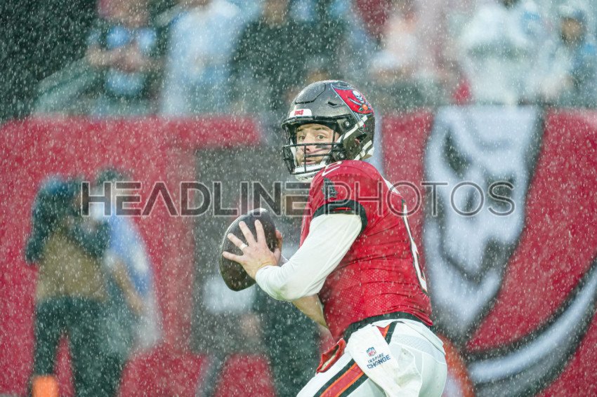 Tampa Bay, Florida, USA, January 3, 2026, Tampa Bay Buccaneers quarterback Baker Mayfield #6 making a pass at Raymond James Stadium. (Photo Credit: Marty Jean-Louis)