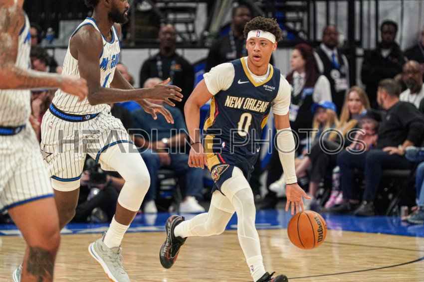 Orlando, Florida, USA, January 11, 2026, New Orleans Pelicans guard Jeremia Fears #0 rushing forward at the Kia Center. (Photo Credit: Marty Jean-Louis)