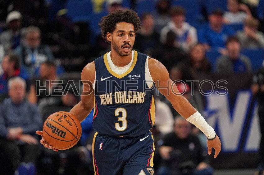 Orlando, Florida, USA, January 11, 2026, New Orleans Pelicans guard Jordan Poole #3 moving forward at the Kia Center. (Photo Credit: Marty Jean-Louis)