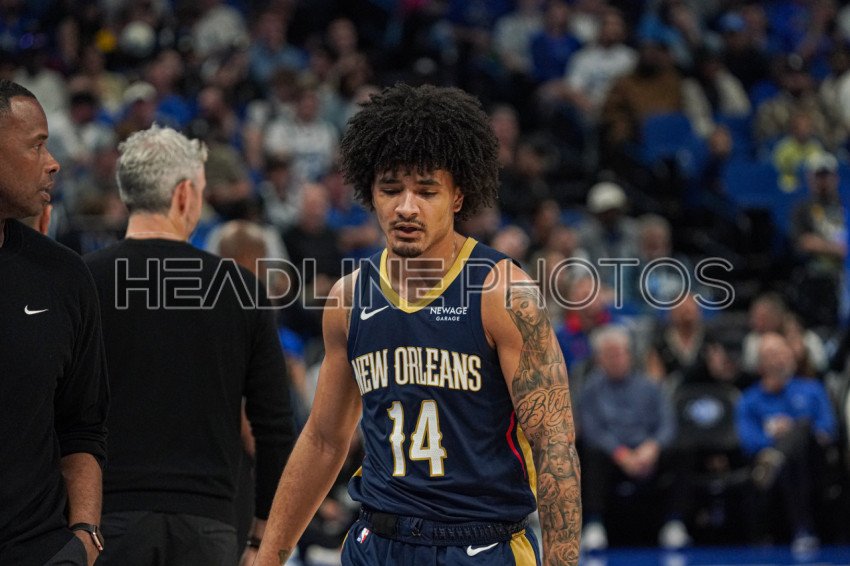 Orlando, Florida, USA, January 11, 2026, New Orleans Pelicans forward Micah Peavy #14 heading back to his seat at the Kia Center. (Photo Credit: Marty Jean-Louis)