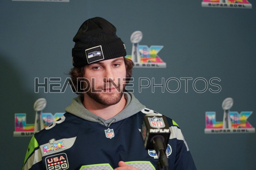 AJ Barner During the Seattle Seahawks Press Conference at the San Jose Convention Center, San Jose, California, USA