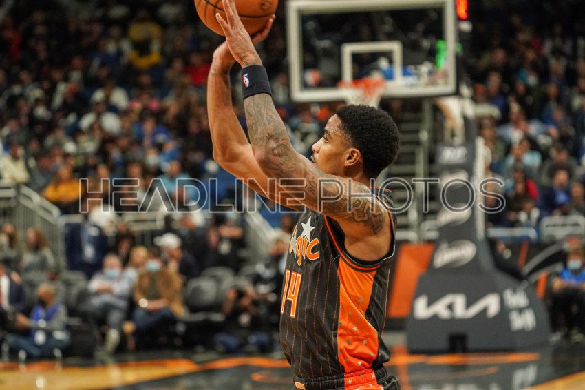 Orlando, Florida, USA, November 24, 2021, Orlando Magic Guard Gary Harris #14 shoots a three point shot during the fourth quarter at the Amway Center. (Photo Credit: Marty Jean-Louis)