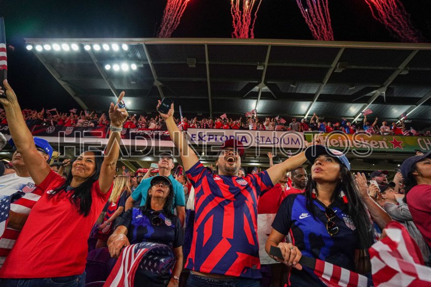 Orlando, Florida, March 27, 2022, USA fans celebrate win in the 2022 World Cup Qualifier at Exploria Stadium. (Photo Credit: Marty Jean-Louis)