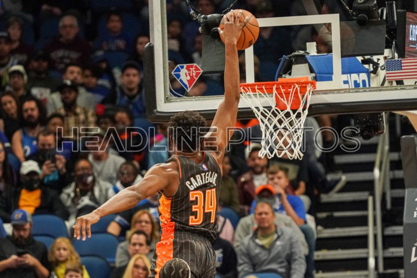 Orlando, Florida, USA, November 24, 2021, Orlando Magic forward Wendell Carter Jr. #34 makes a dunk against the Hornets at the Amway Center. (Photo Credit: Marty Jean-Louis)