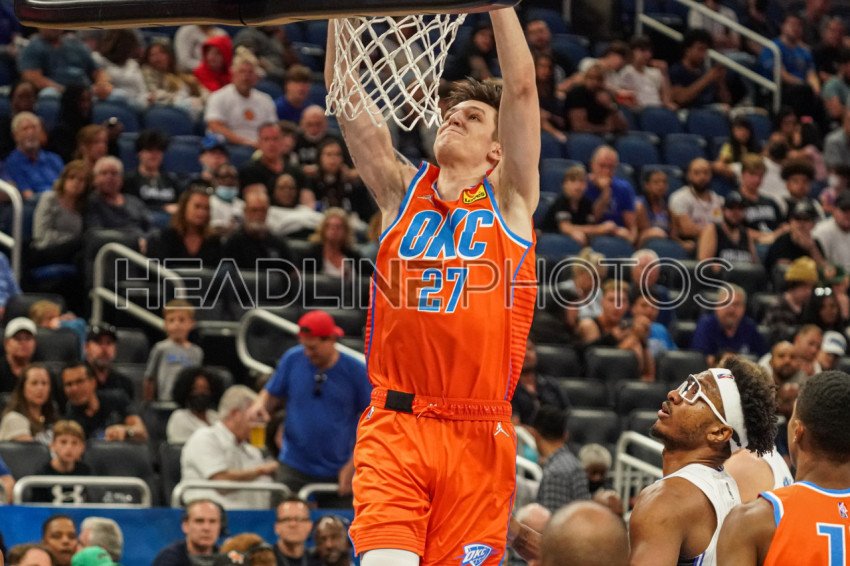 Orlando, Florida, USA, March 20, 2022, Oklahoma Thunder Guard Vit Krejci #27 makes a dunk in the first half at the Amway Center. (Photo Credit: Marty Jean-Louis)