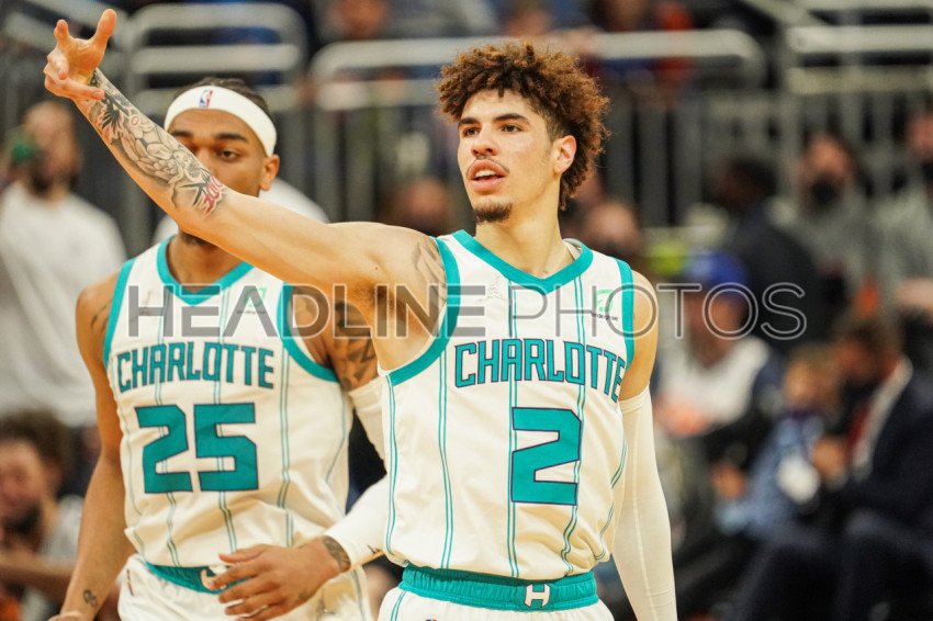 Orlando, Florida, USA, November 24, 2021, Charlotte Hornests Guard LaMelo Ball #2 reacts after making a three point shot at the Amway Center. (Photo Credit: Marty Jean-Louis)