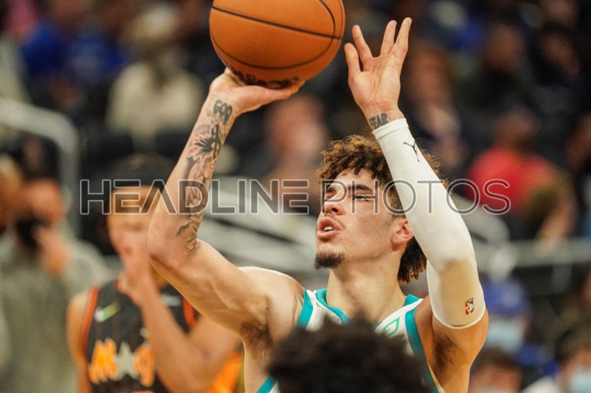 Orlando, Florida, USA, November 24, 2021, Charlotte Hornests Guard Lamelo Ball #2 shoots a free throw during the second quarter at the Amway Center. (Photo Credit: Marty Jean-Louis)