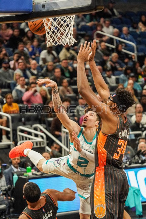Orlando, Florida, USA, November 24, 2021, Charlotte Hornests Guard LaMelo Ball #2 attempt to make a basket against the Orlando Magic at the Amway Center. (Photo Credit: Marty Jean-Louis)
