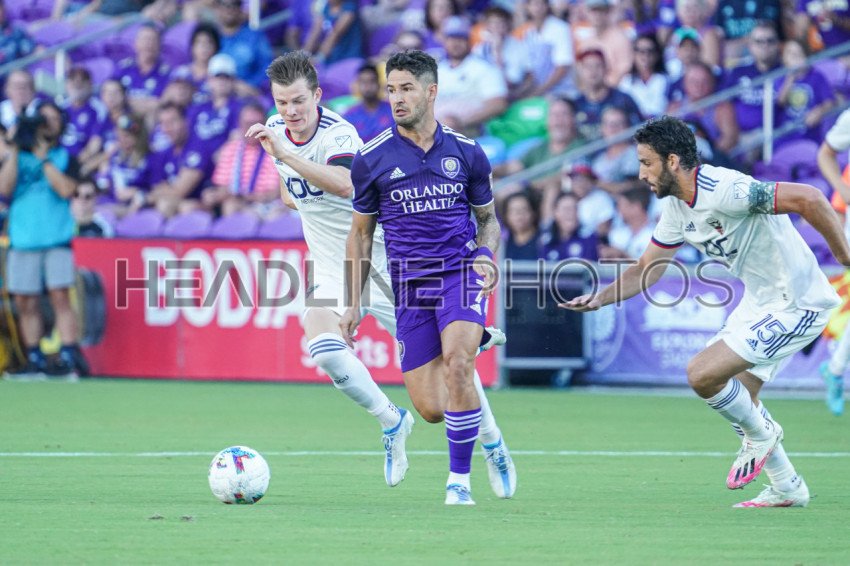 Orlando, Florida, USA, July 4, 2022, Orlando City SC player Alexandre Pato #7 runs pass DC United players at Exploria Stadium. (Photo Credit: Marty Jean-Louis)