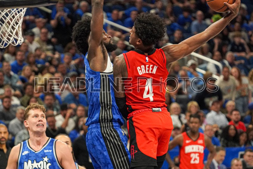 Orlando, Florida, USA, October 25, 2023, Houston Rockets guard Jalen Green #4 attempt to make a dunk at the Amway Center. (Photo Credit: Marty Jean-Louis)