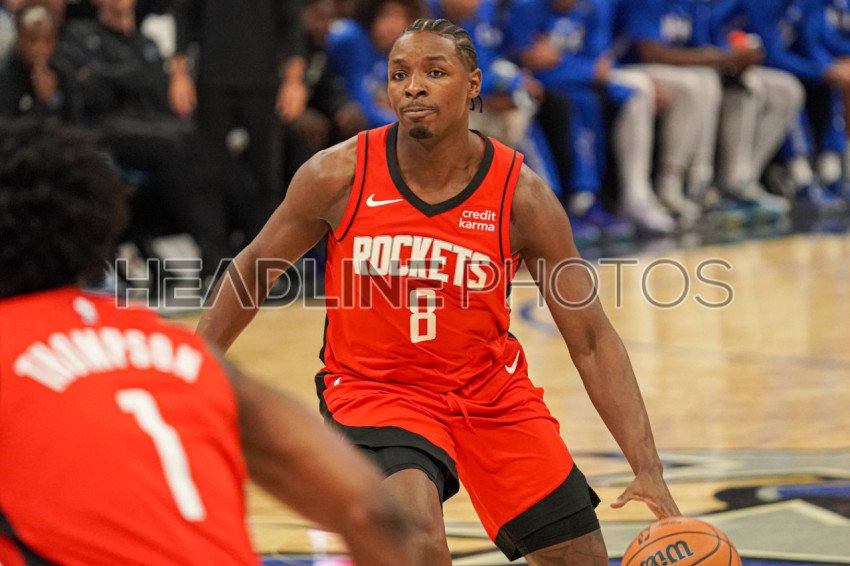Orlando, Florida, USA, October 25, 2023, Houston Rockets forward Jae'Sean Tate #8 dribbles the ball towrads the basket at the Amway Center. (Photo Credit: Marty Jean-Louis)