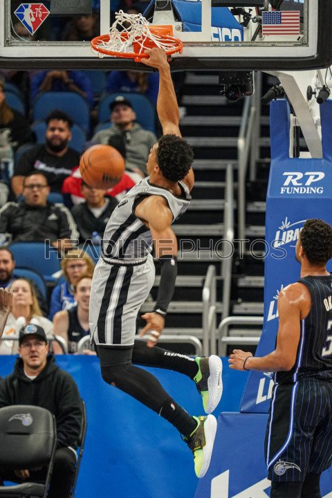 Orlando, Florida, USA, November 5, 2021, San Antonio Spurs forward Keldon Johnson #3 makes a dunk against the Orlando Magic at the Amway Center. (Photo Credit: Marty Jean-Louis)