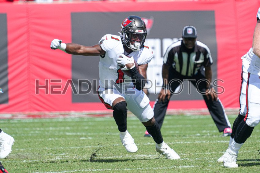 Tampa Bay, Florida, USA, October 22, 2023, Tampa Bay Buccaneers running back Rachaad White #1 makes a run at Raymond James Stadium. (Photo Credit: Marty Jean-Louis)