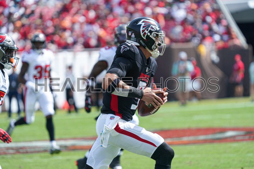 Tampa Bay, Florida, USA, October 22, 2023, Atlanta Falcons quarterback Desmond Ridder #9 makes a run at Raymond James Stadium. (Photo Credit: Marty Jean-Louis)