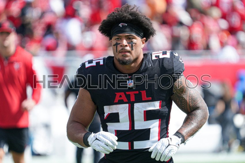 Tampa Bay, Florida, USA, October 22, 2023, Atlanta Falcons player Tyler Allgeier #25 at Raymond James Stadium. (Photo Credit: Marty Jean-Louis)